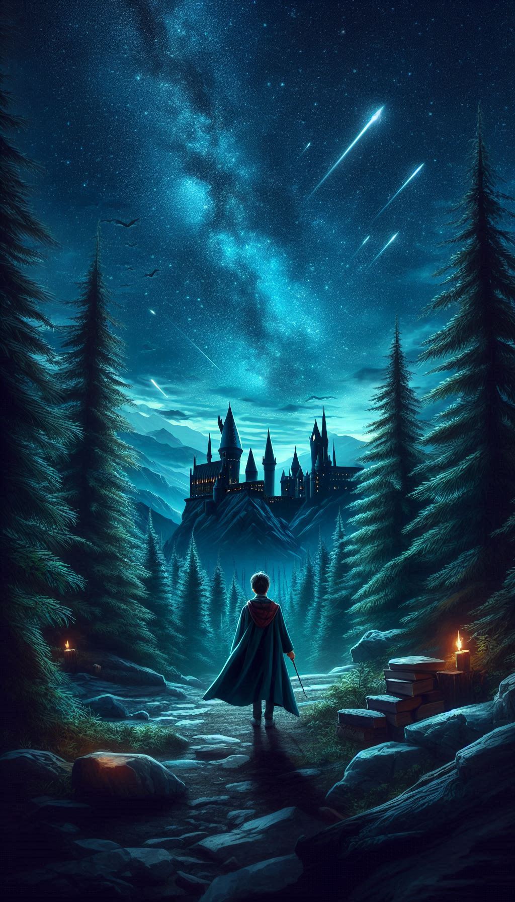 Обои, созданные с использованием ИИ, часто изображают культовые сцены и детали, связанные с Гарри Поттером и Хогвартсом. Вот несколько популярных образов: