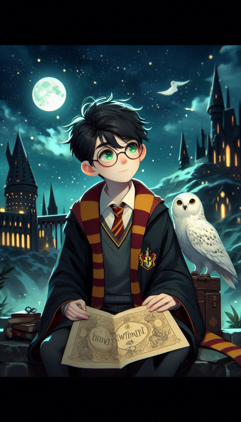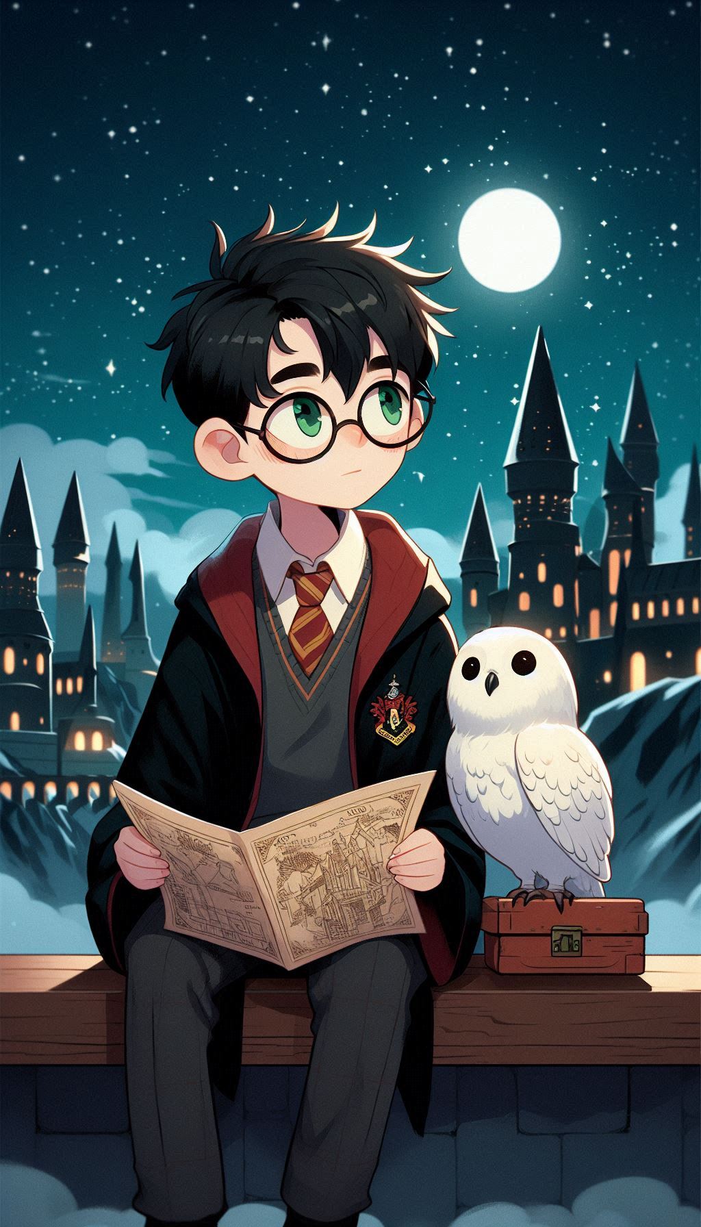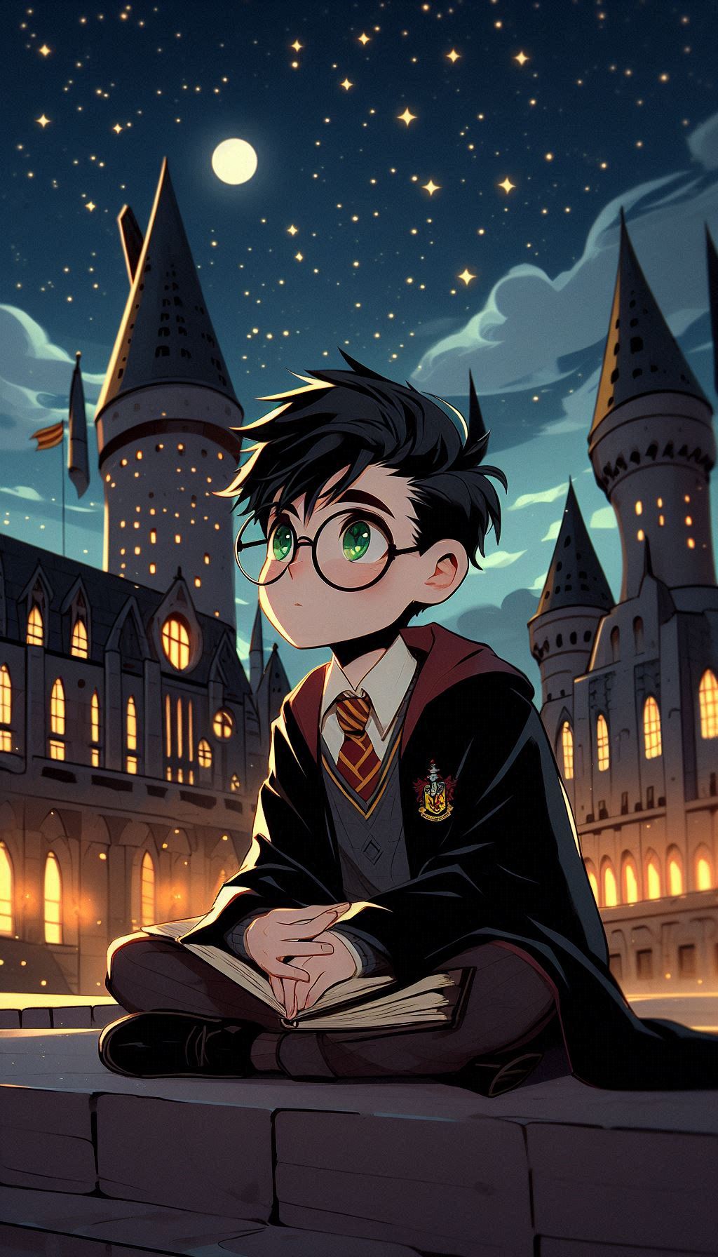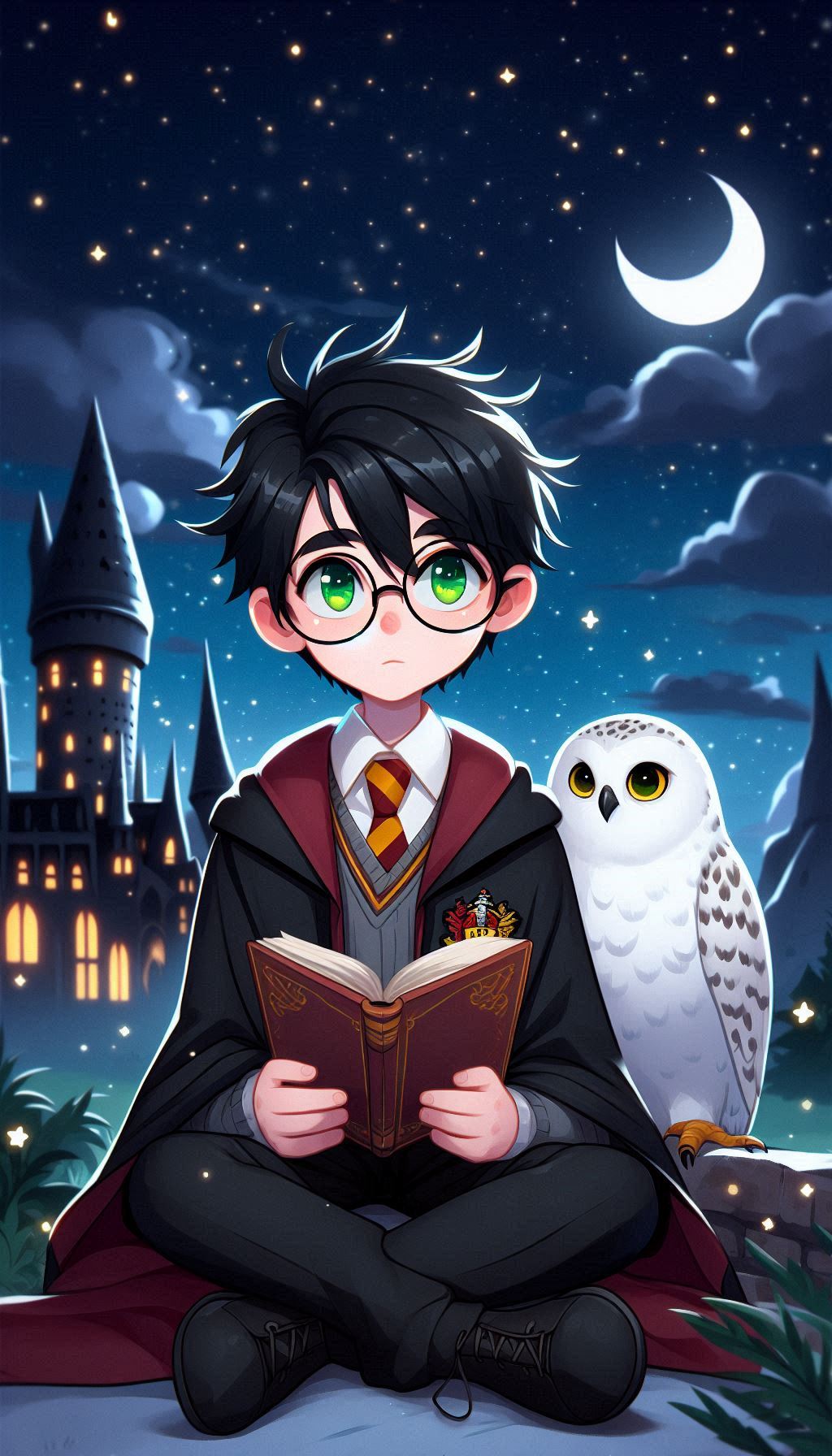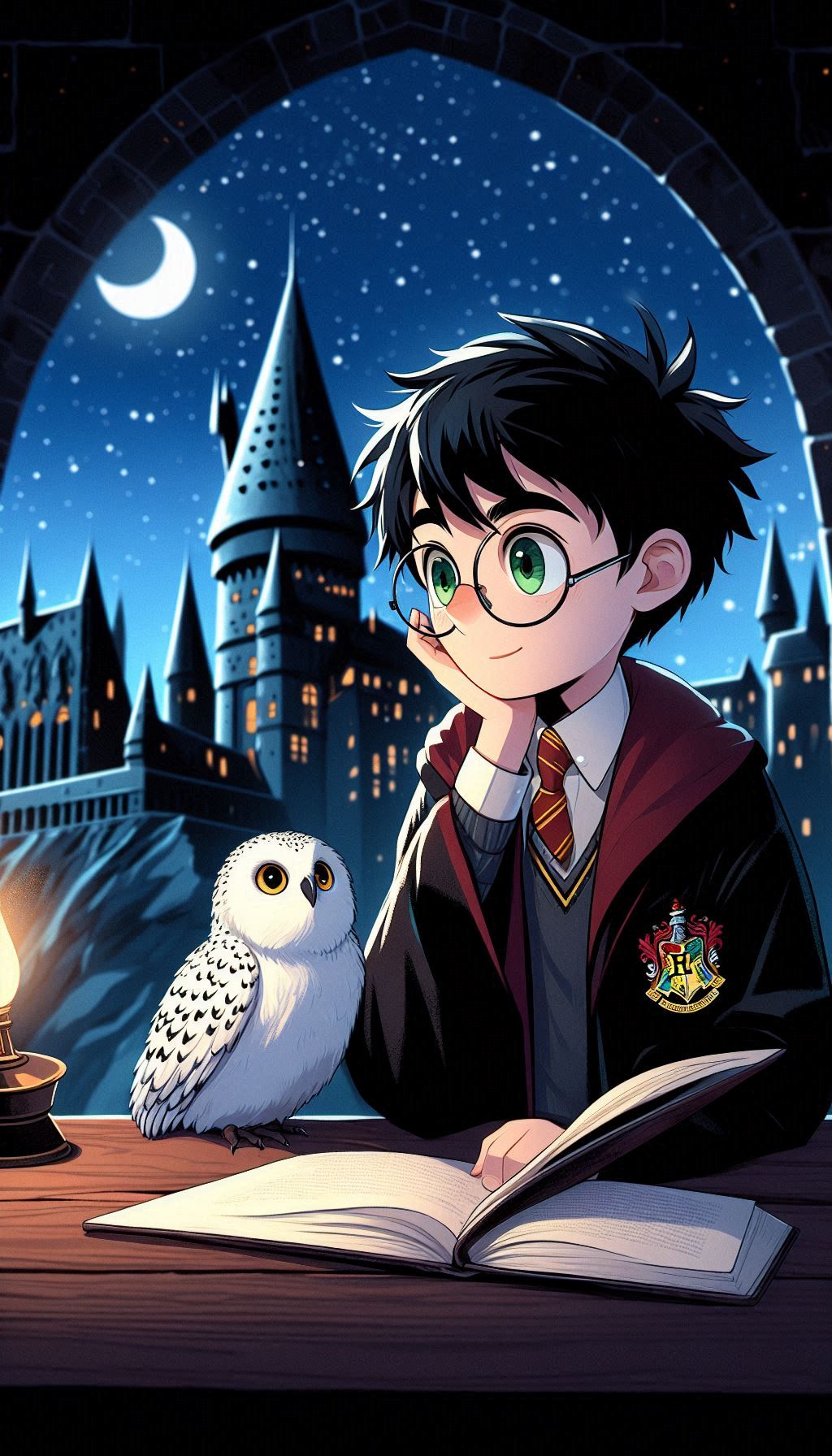 1. Гарри на фоне Хогвартса ночью. В таких сценах ИИ изображает Хогвартс, освещённый лунным светом, что добавляет мистики и глубины. Гарри может быть изображён в своей мантии, с волшебной палочкой в руке или совой Буклей, что создаёт впечатление, будто он вот-вот отправится в новое приключение.