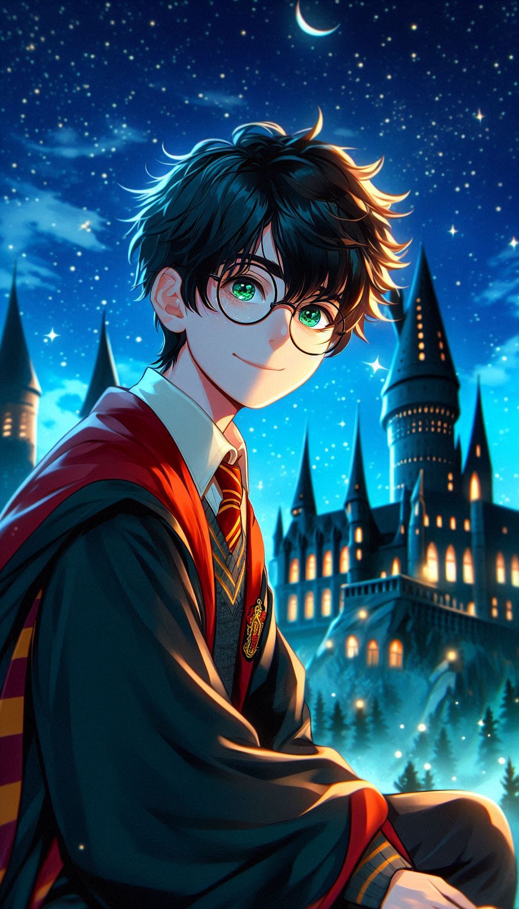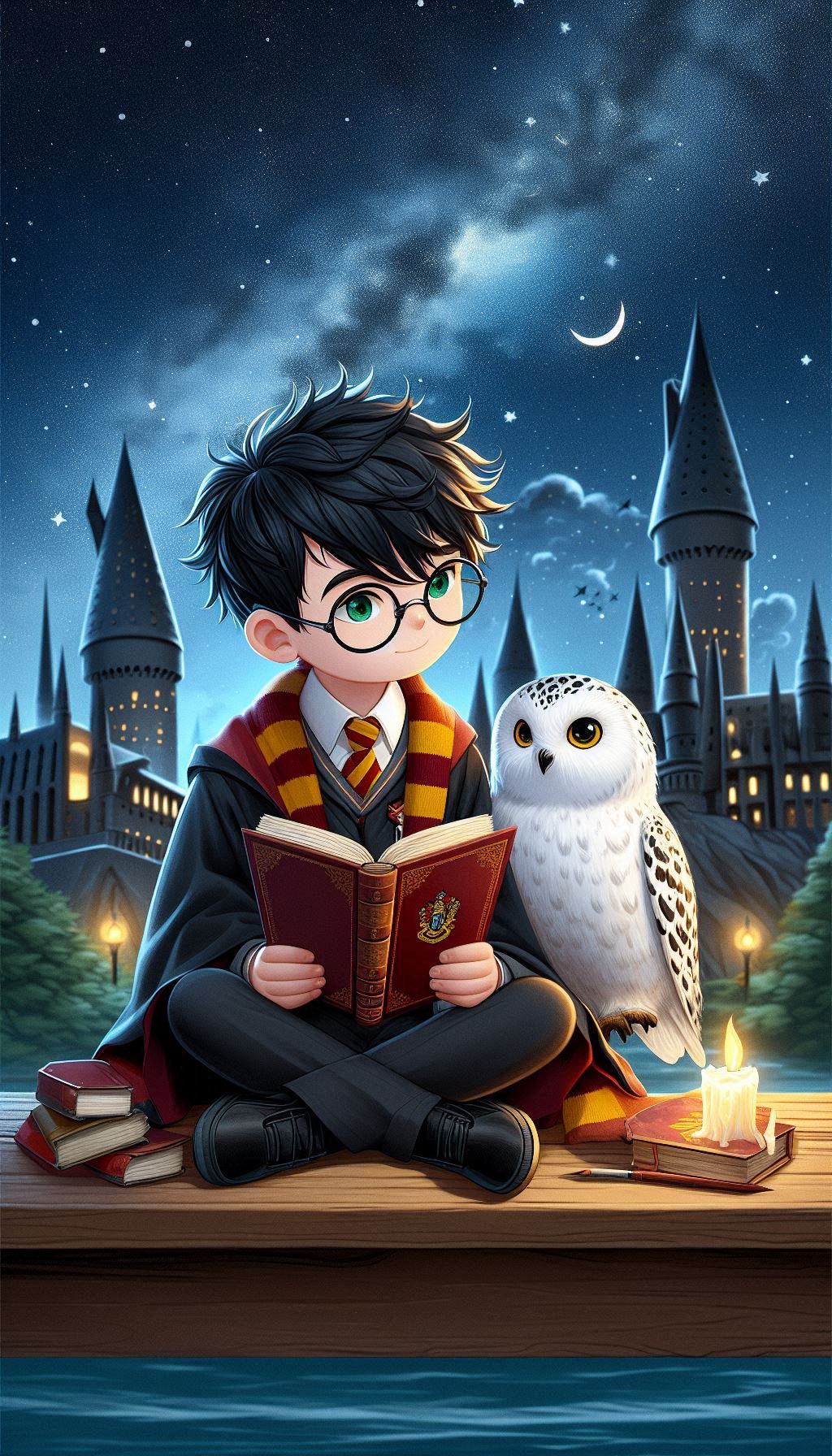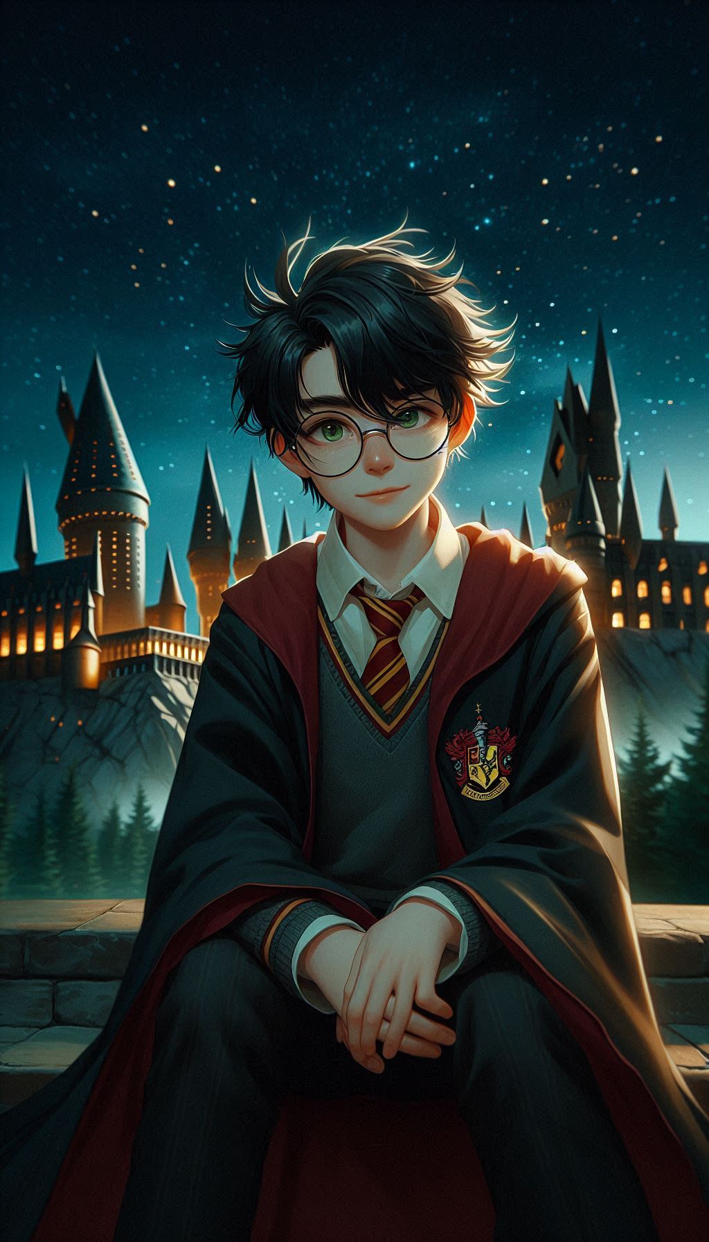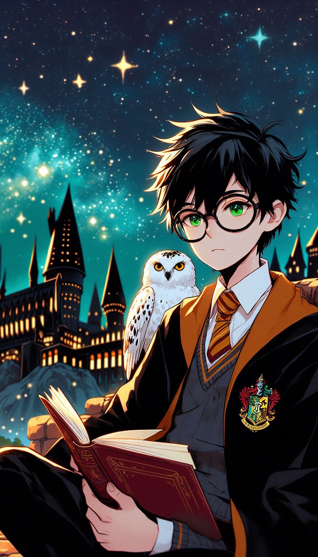 1. Гарри на фоне Хогвартса ночью. В таких сценах ИИ изображает Хогвартс, освещённый лунным светом, что добавляет мистики и глубины. Гарри может быть изображён в своей мантии, с волшебной палочкой в руке или совой Буклей, что создаёт впечатление, будто он вот-вот отправится в новое приключение.