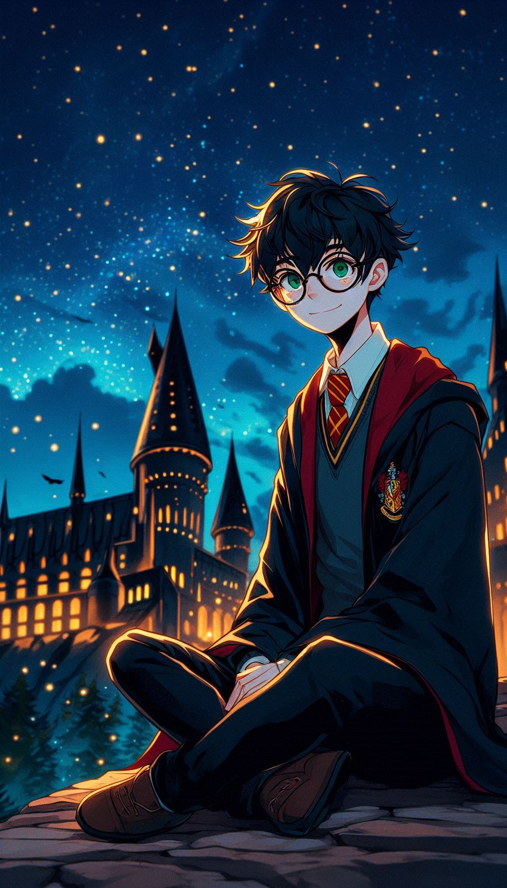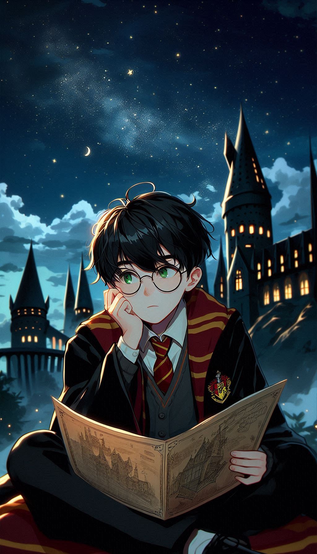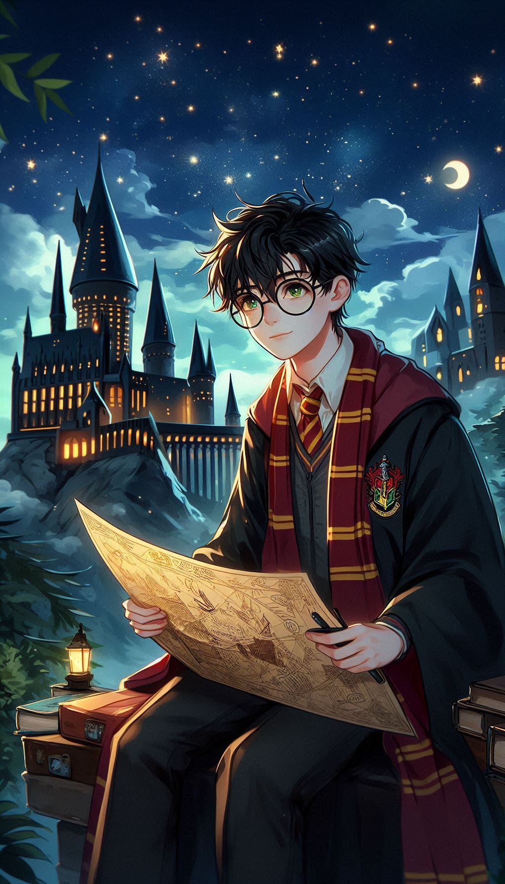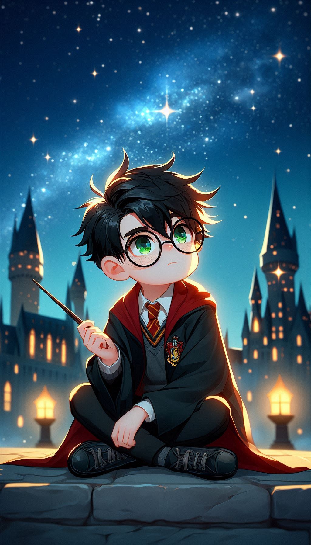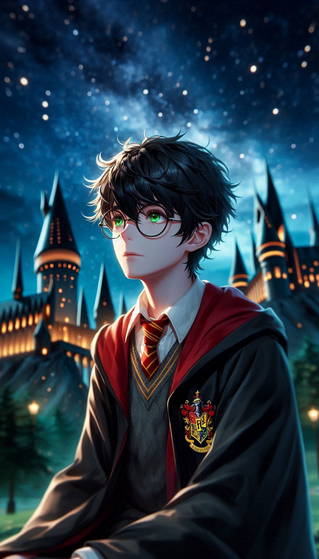 1. Гарри на фоне Хогвартса ночью. В таких сценах ИИ изображает Хогвартс, освещённый лунным светом, что добавляет мистики и глубины. Гарри может быть изображён в своей мантии, с волшебной палочкой в руке или совой Буклей, что создаёт впечатление, будто он вот-вот отправится в новое приключение.